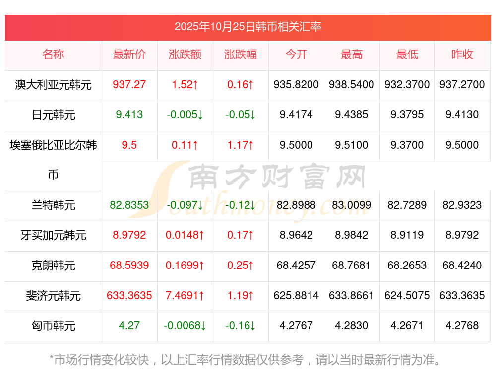 2025年10月25日韓幣相關(guān)匯率查詢
