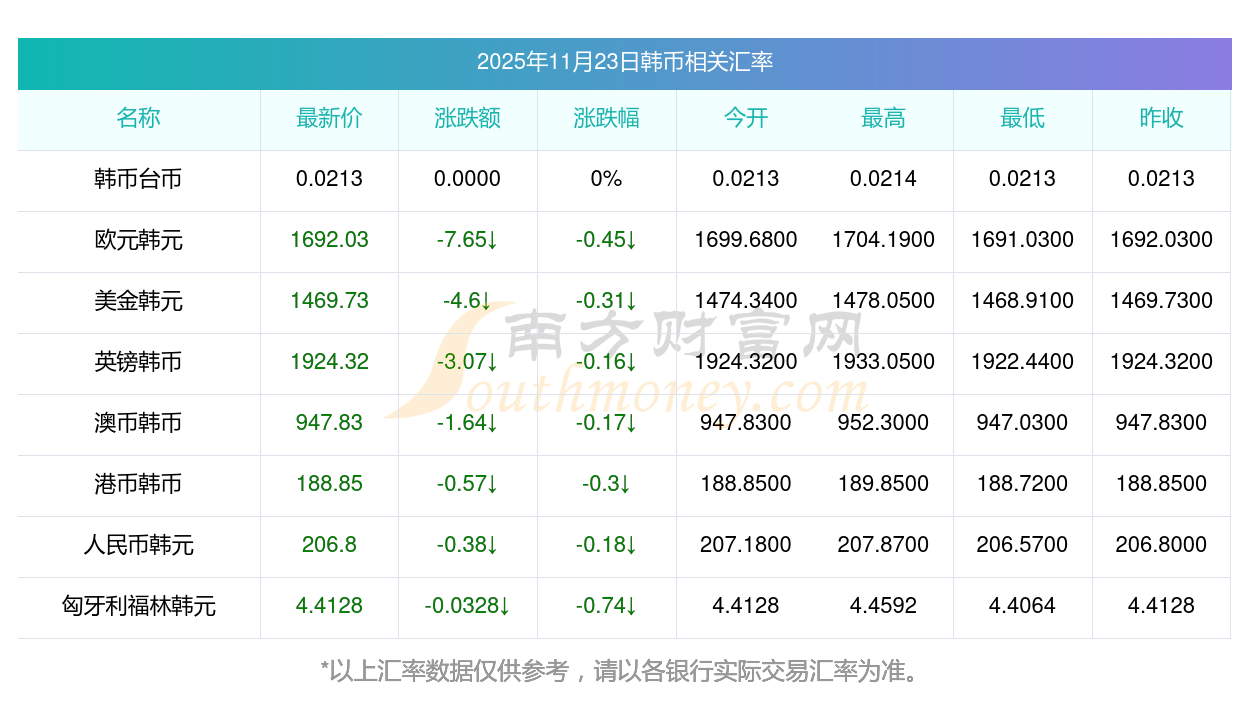 南方財富網(wǎng)為您提供韓幣對新加坡幣匯率最新價格詳情。