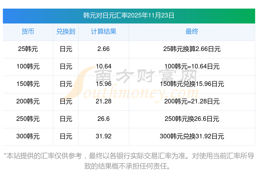 新匯率調(diào)整 今天3韓元兌換日元匯率是多少? 2025-11-23