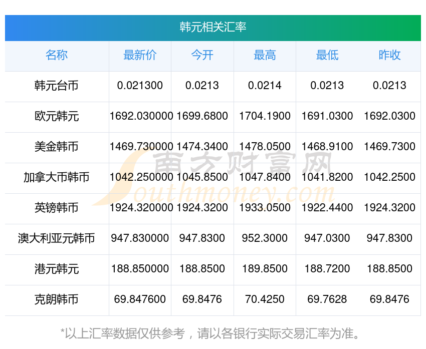 南方財(cái)富網(wǎng)為您提供韓元對(duì)日元匯率最新價(jià)格詳情。