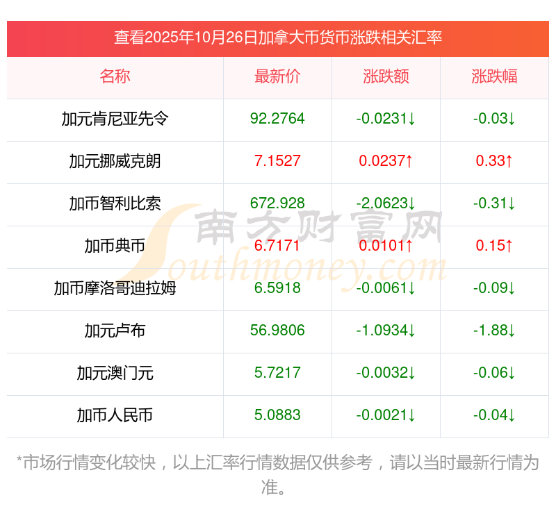 2025年10月26日加拿大幣相關(guān)匯率查詢