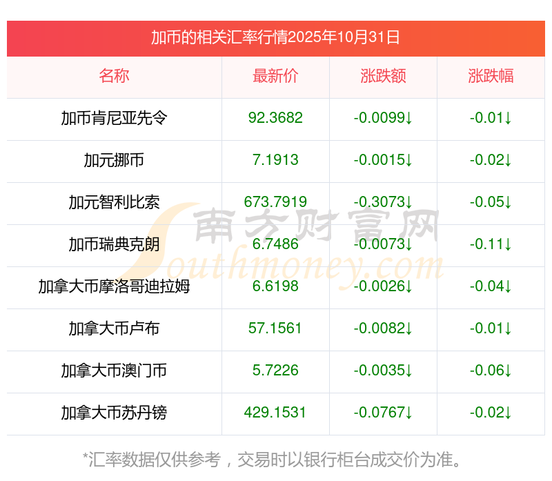 根據(jù)2025年10月31日匯率計算,CAD兌換KES匯率最新價92.368200,今開價92.3748,昨收價92.3781,最高價92.4211,最低價92.3452。