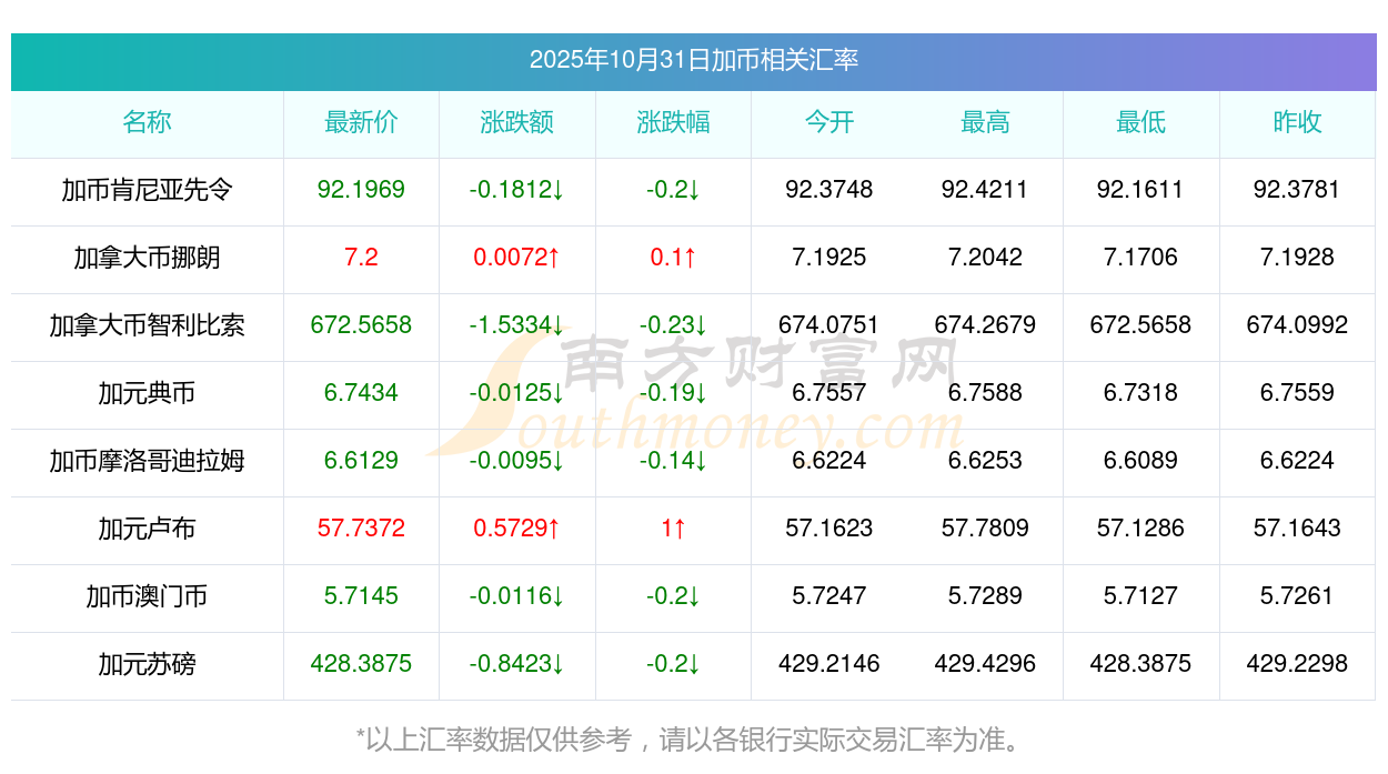 2025年10月31日加幣相關(guān)匯率查詢