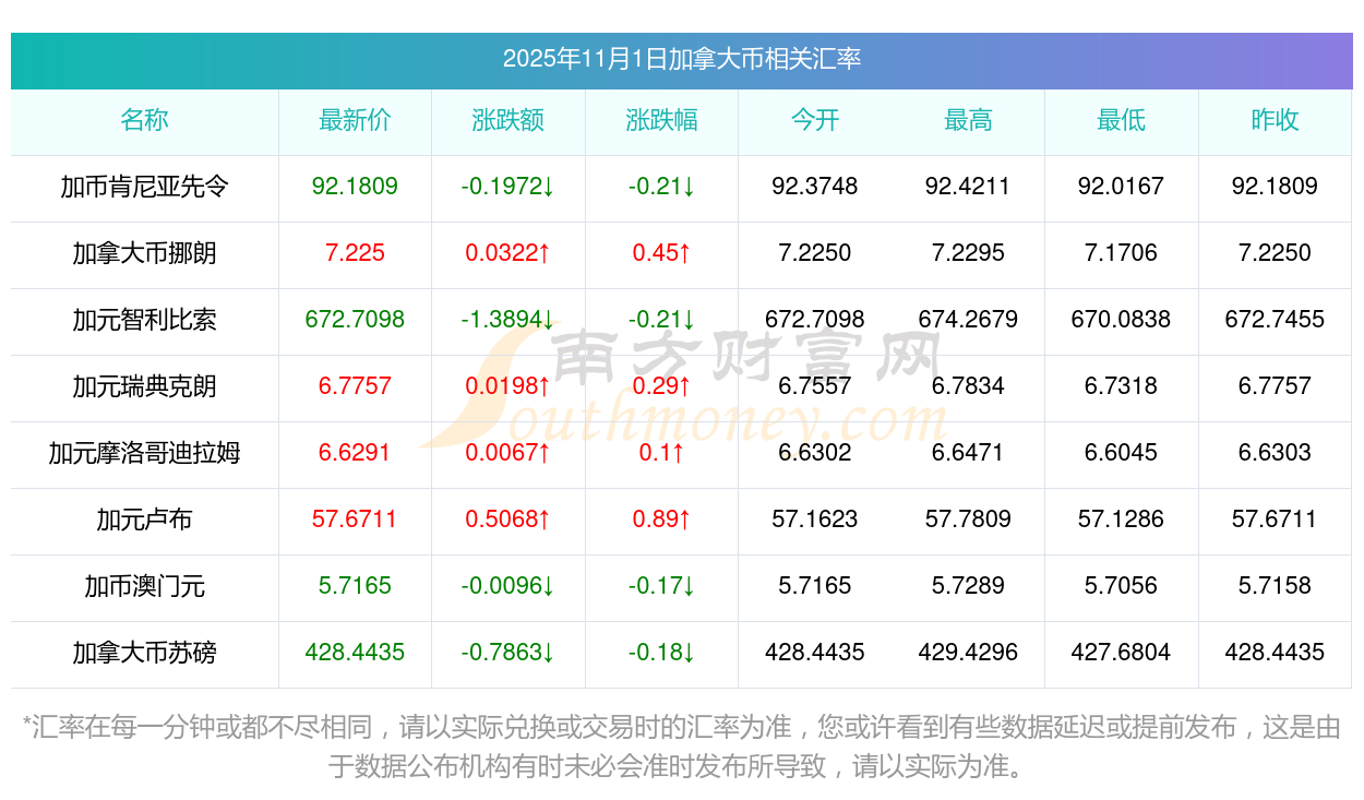 2025年11月1日加拿大幣相關(guān)匯率查詢