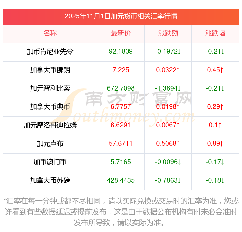 2025年11月1日加元相關(guān)匯率查詢