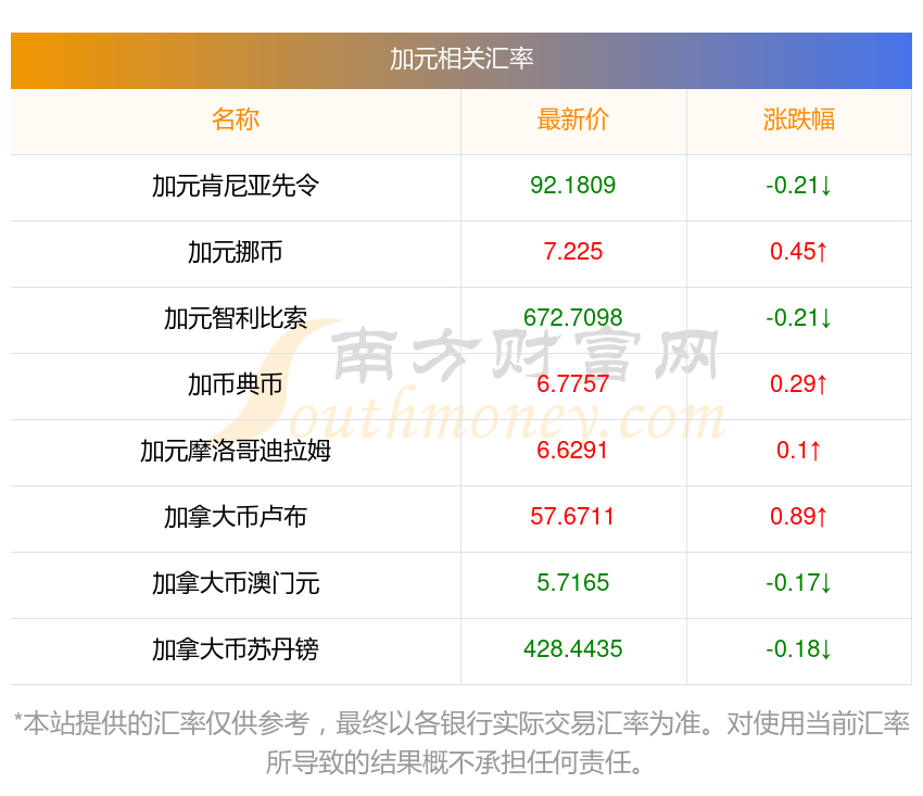 2025年11月1日加元相關(guān)匯率查詢