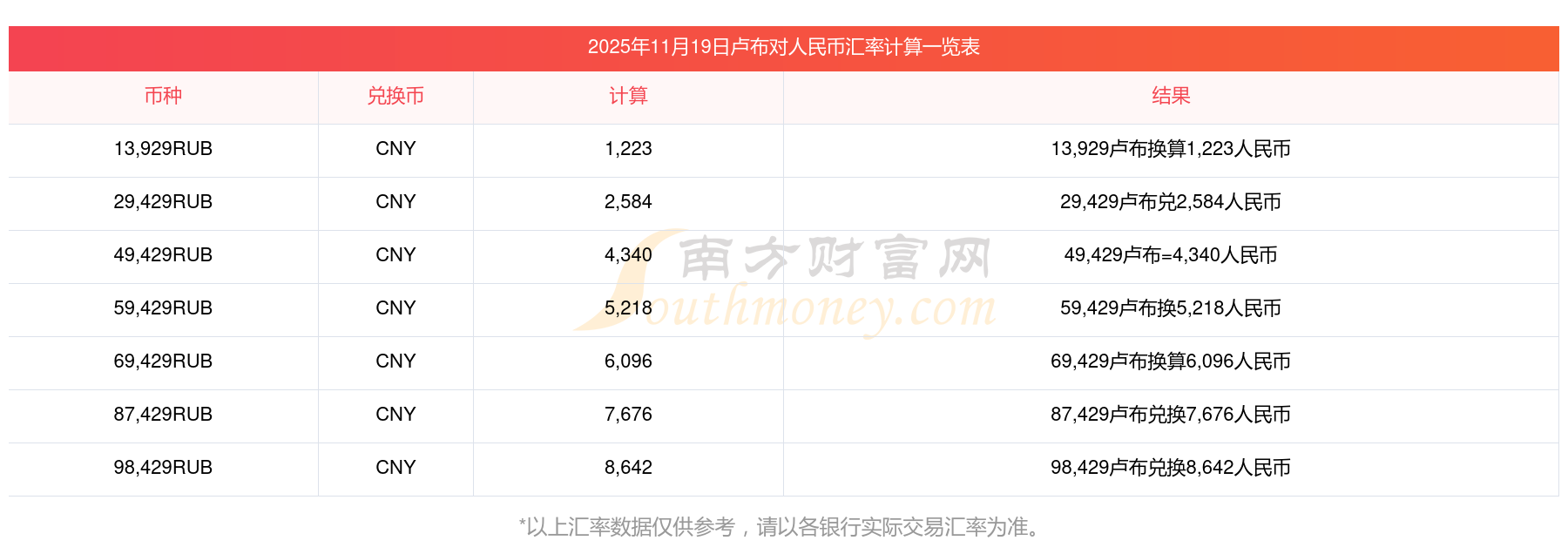 今日5174 RUB 兌 CNY匯率計(jì)算結(jié)果多少(11-19)