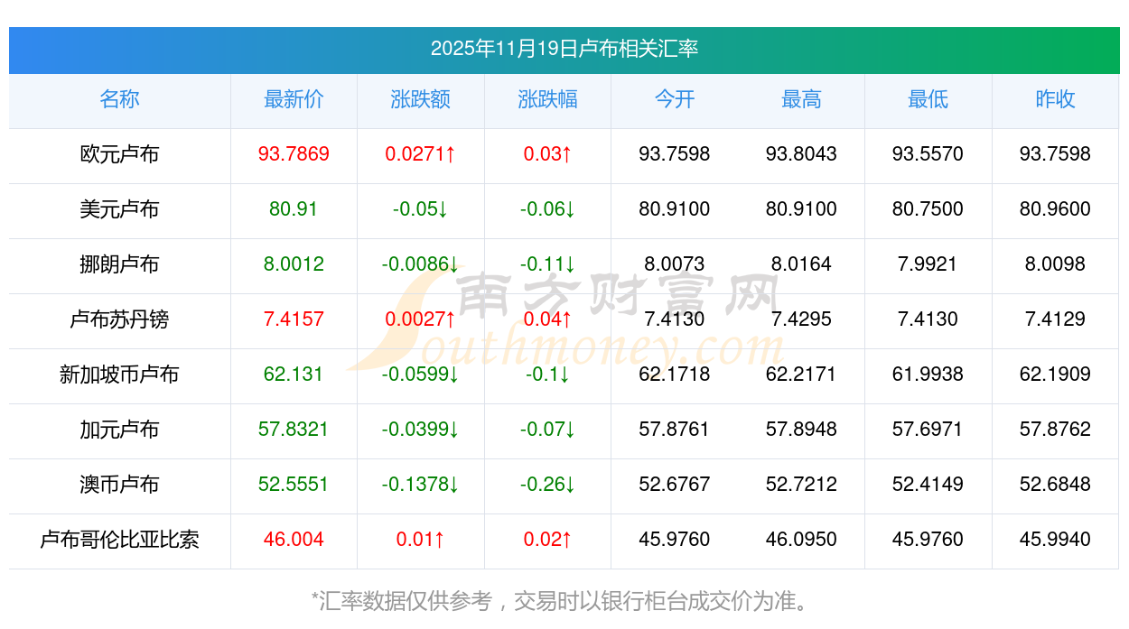 南方財富網(wǎng)為您提供盧布對人民幣匯率最新價格詳情。