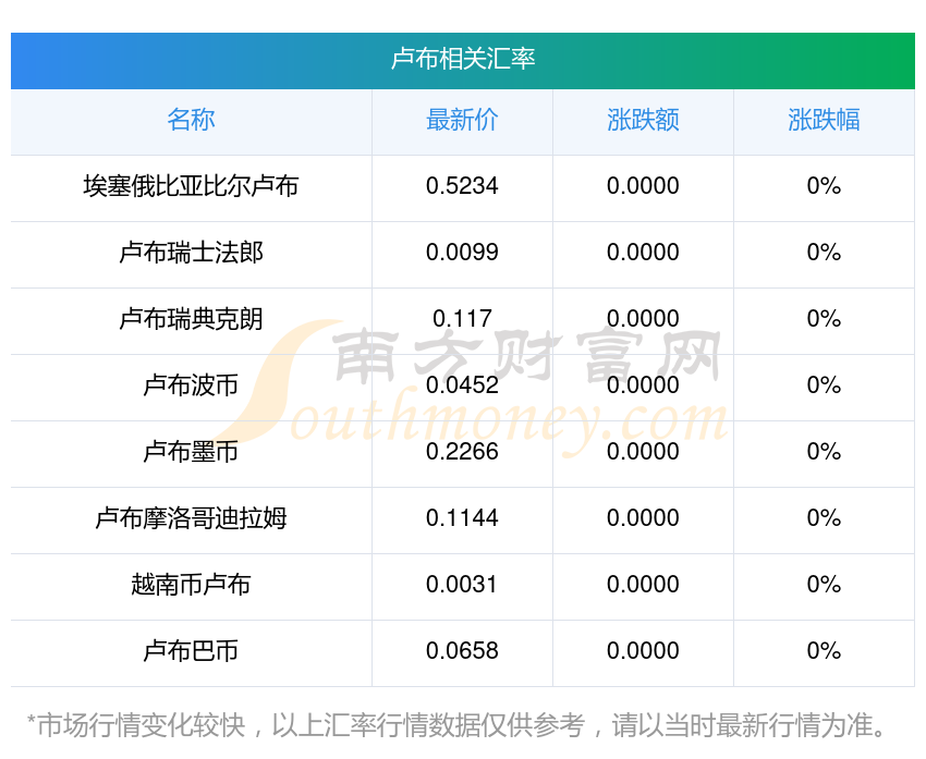 南方財(cái)富網(wǎng)為您提供盧布對埃塞俄比亞比爾匯率最新價格詳情。