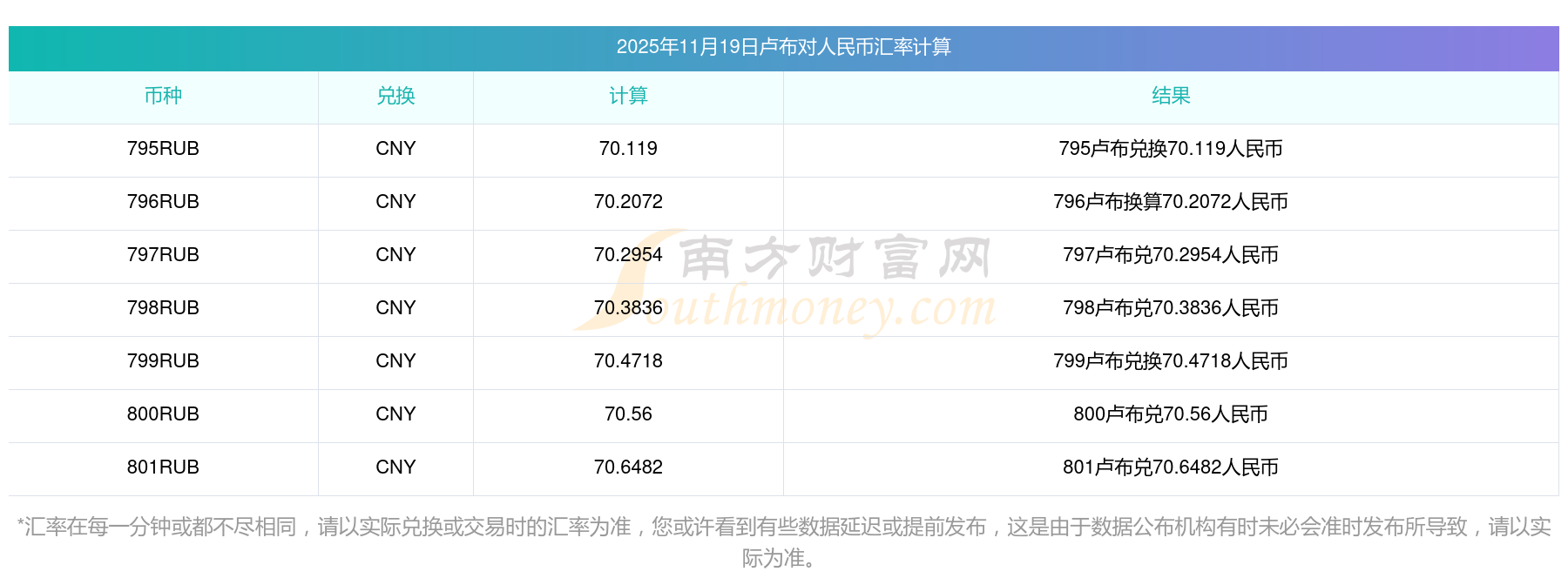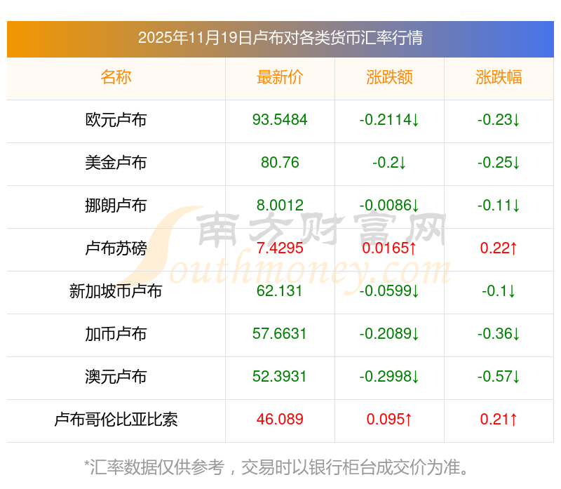 盧布:今天4682 RUB 兌 CNY匯率計算(11月19日)