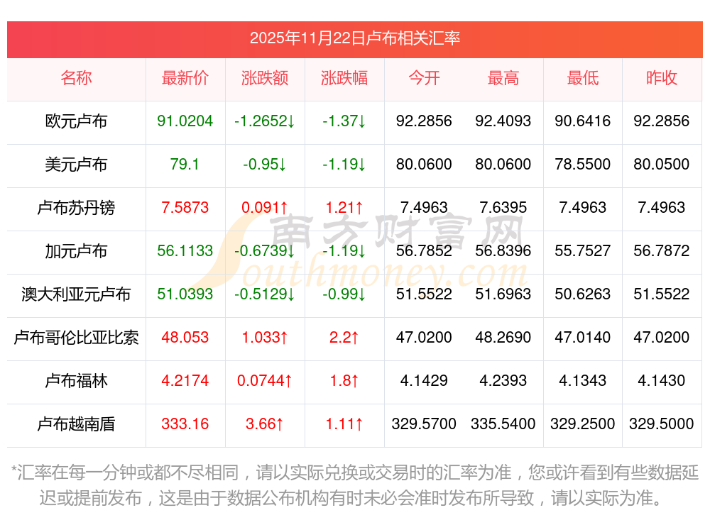 南方財(cái)富網(wǎng)為您提供盧布對(duì)利幣匯率最新價(jià)格詳情。