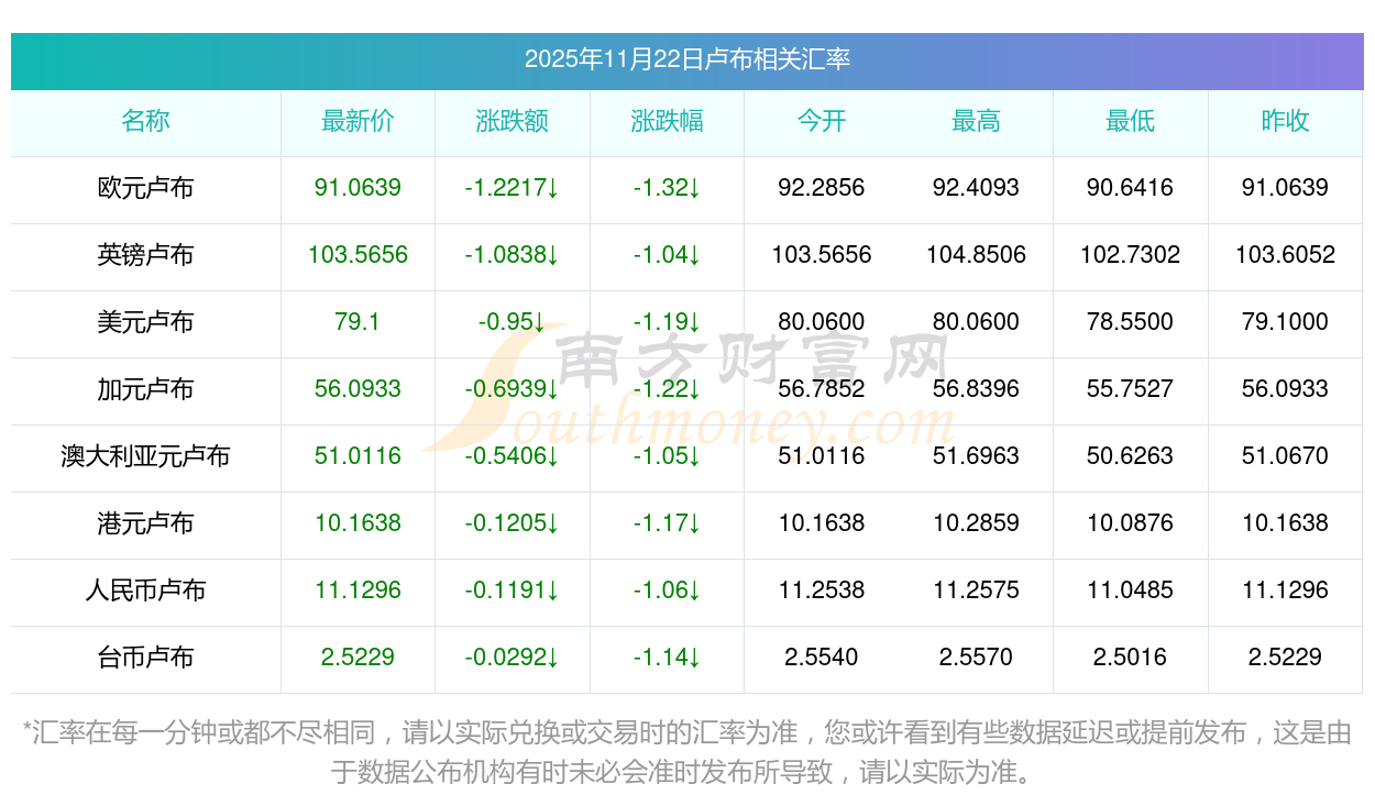 南方財(cái)富網(wǎng)為您提供盧布對(duì)新幣匯率最新價(jià)格詳情。