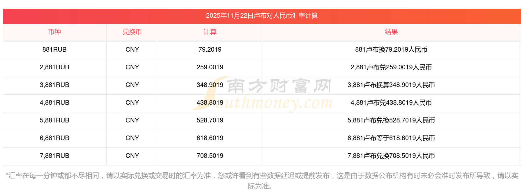 4682 RUB 兌 CNY(盧布對(duì)人民幣)今天匯率查詢(2025/11/22)