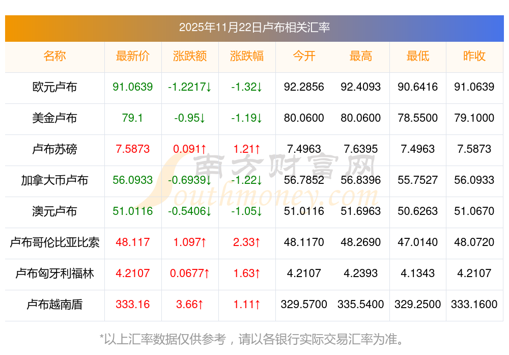 南方財(cái)富網(wǎng)為您提供盧布對(duì)人民幣匯率最新價(jià)格詳情。