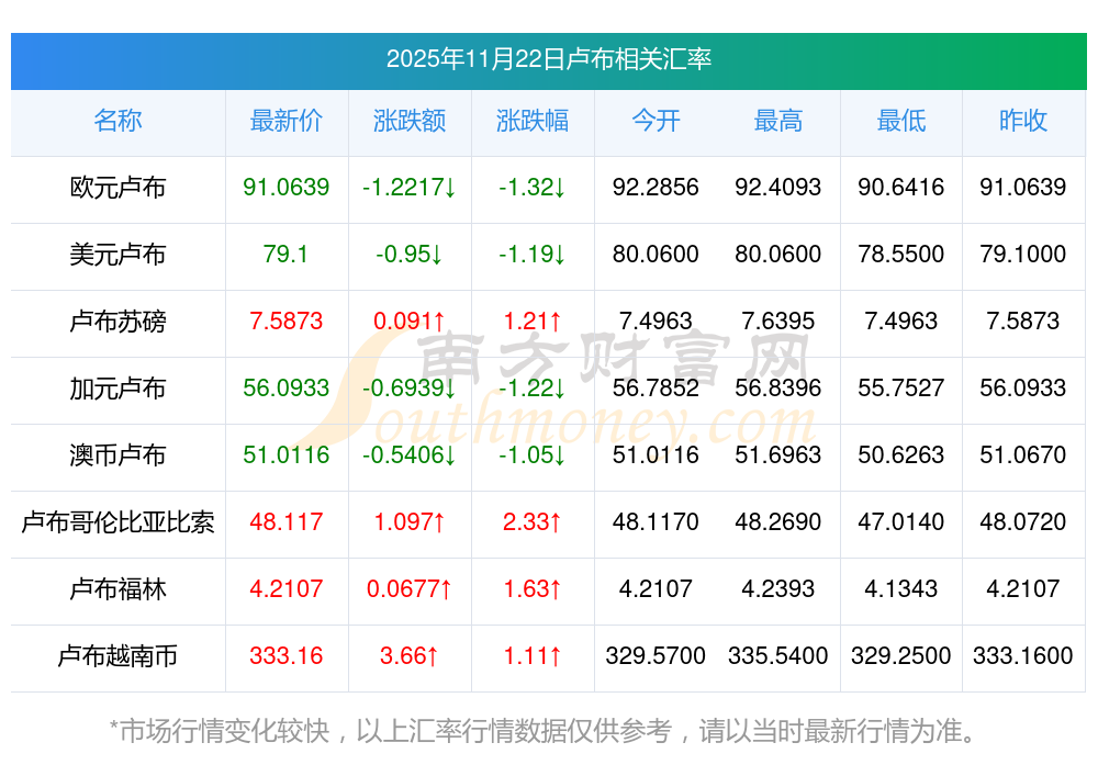南方財富網(wǎng)為您提供盧布對人民幣匯率最新價格詳情。