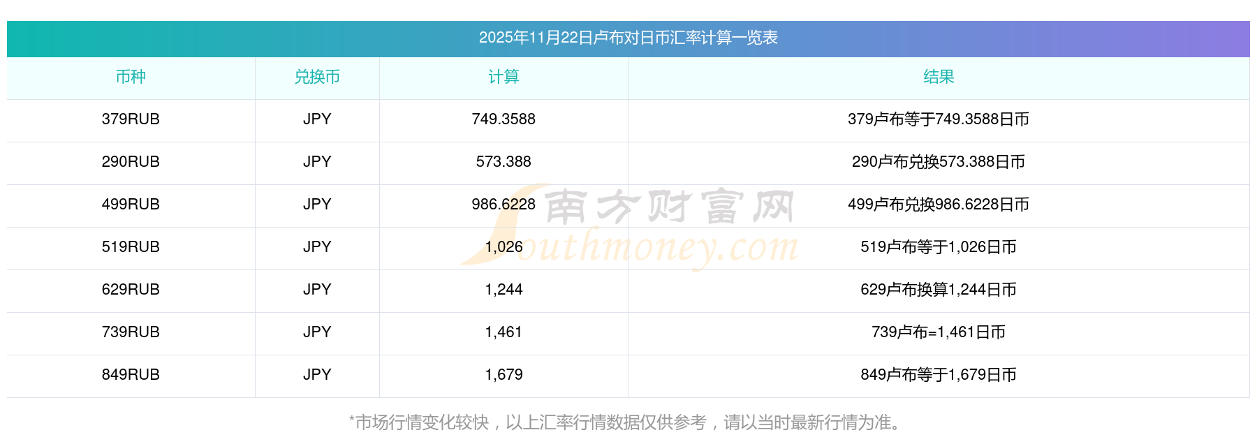 南方財富網(wǎng)為您提供盧布對日幣匯率最新價格詳情。