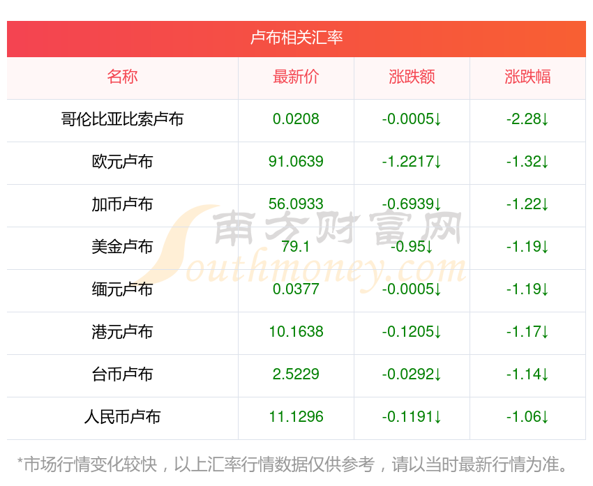 南方財(cái)富網(wǎng)為您提供盧布對剛郎匯率最新價(jià)格詳情。