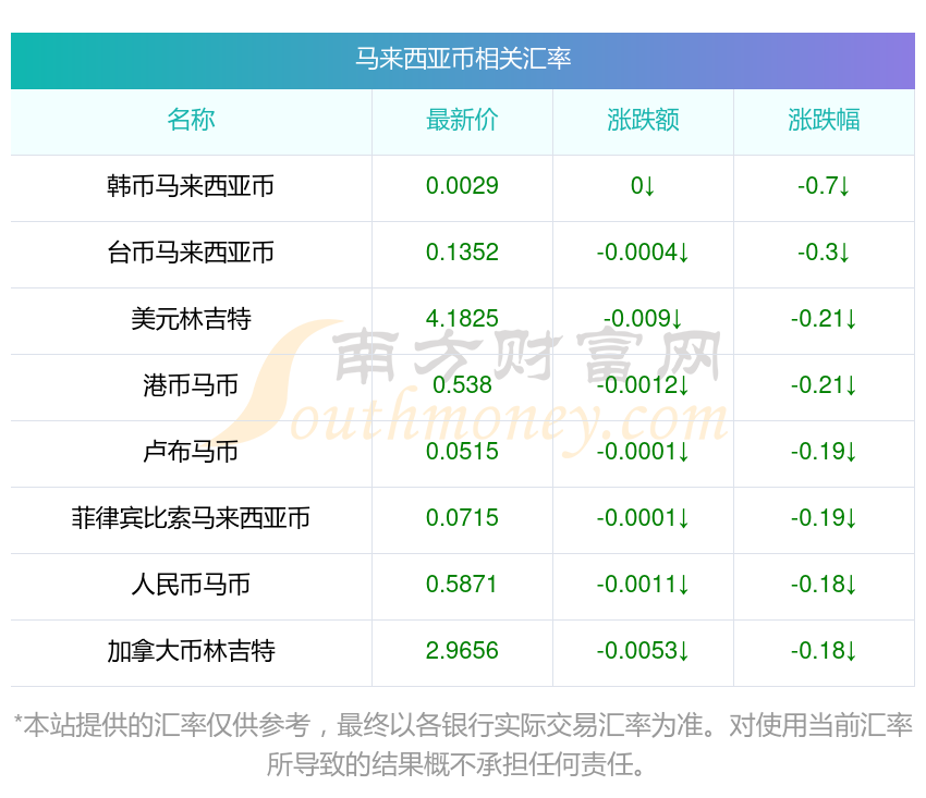 2025年11月6日馬來西亞幣相關(guān)匯率查詢