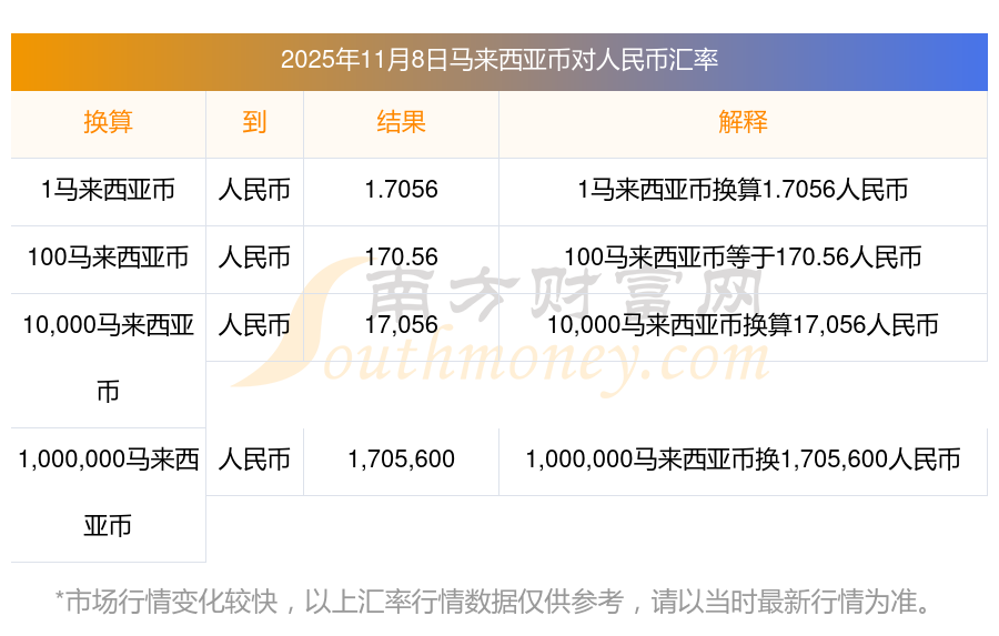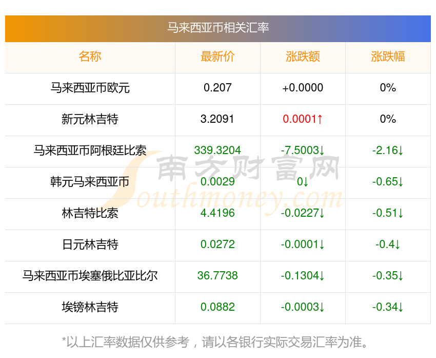 南方財富網(wǎng)為您提供馬來西亞幣對人民幣匯率最新價格詳情。
