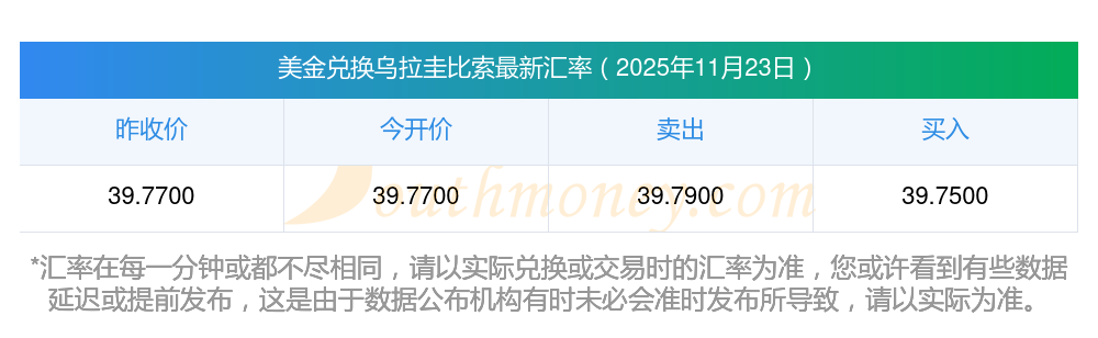 2025年11月23日美金與烏拉圭比索的兌換匯率計(jì)算如下: