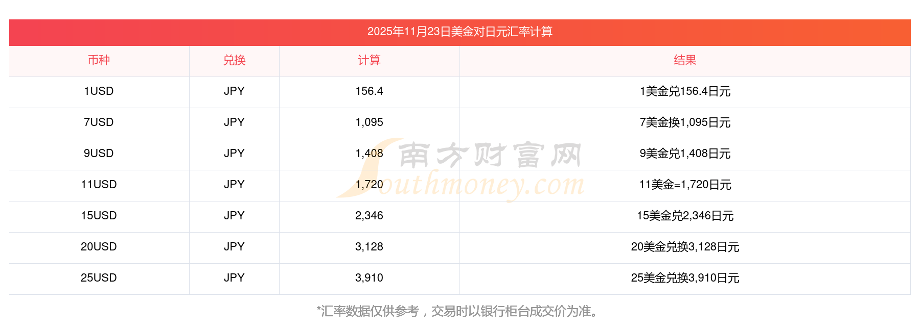 日元今日匯率實(shí)時查詢 108美金對日元匯率2025-11-23