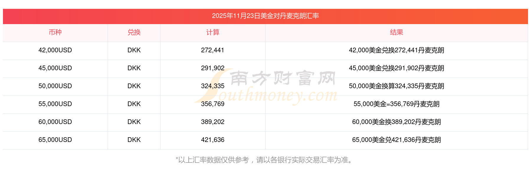 今天美金查詢:4美金對丹麥克朗匯率是多少?11月23日