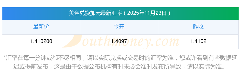 今天匯率行情:1美元兌加幣匯率表(2025-11-23)
