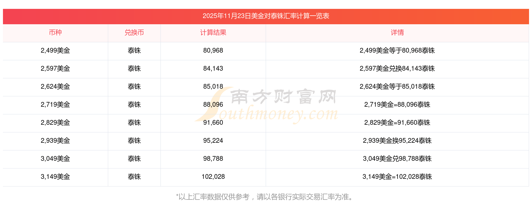 南方財(cái)富網(wǎng)為您提供美金對(duì)泰銖匯率最新價(jià)格詳情。
