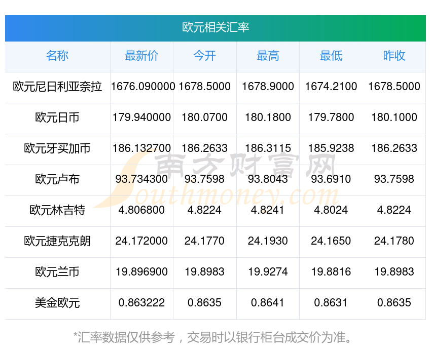 匯率數(shù)據(jù)僅供參考,交易時(shí)以銀行柜臺(tái)成交價(jià)為準(zhǔn)。
