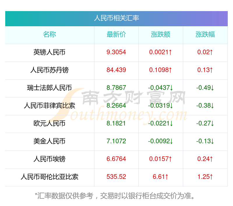匯率在每一分鐘或都不盡相同,請以實際兌換或交易時的匯率為準(zhǔn),您或許看到有些數(shù)據(jù)延遲或提前發(fā)布,這是由于數(shù)據(jù)公布機(jī)構(gòu)有時未必會準(zhǔn)時發(fā)布所導(dǎo)致,請以實際為準(zhǔn)。