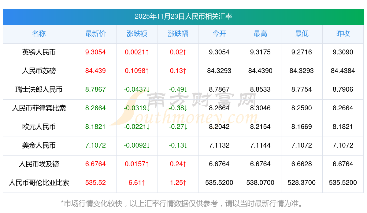 2025年11月23日人民幣相關(guān)匯率查詢