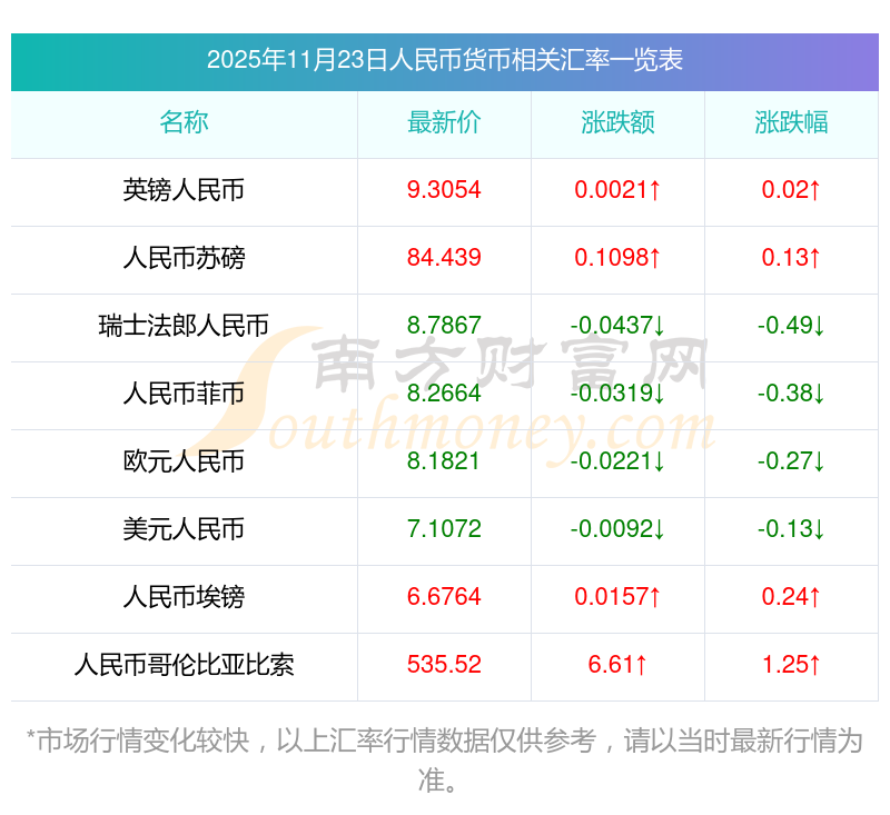 2025年11月23日人民幣相關匯率查詢
