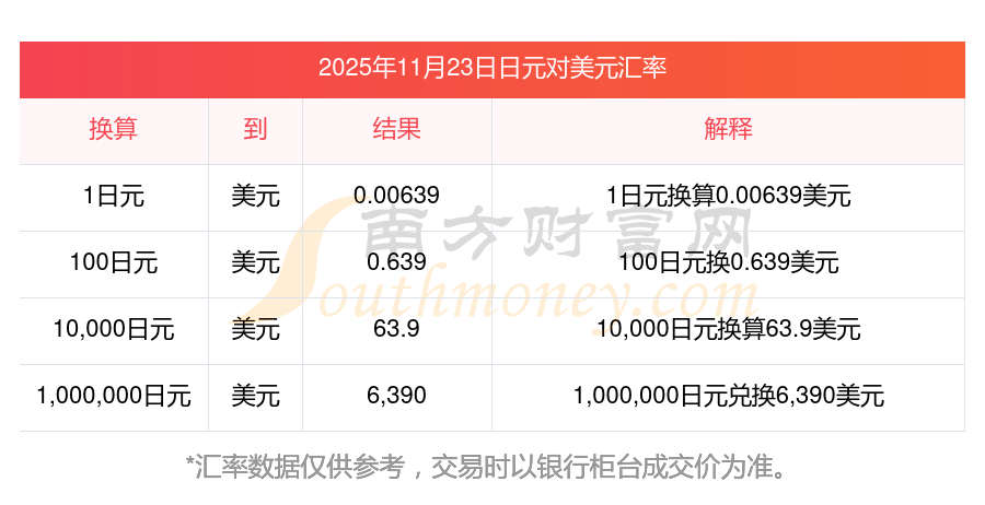 南方財(cái)富網(wǎng)為您提供日元對美元匯率最新價(jià)格詳情。