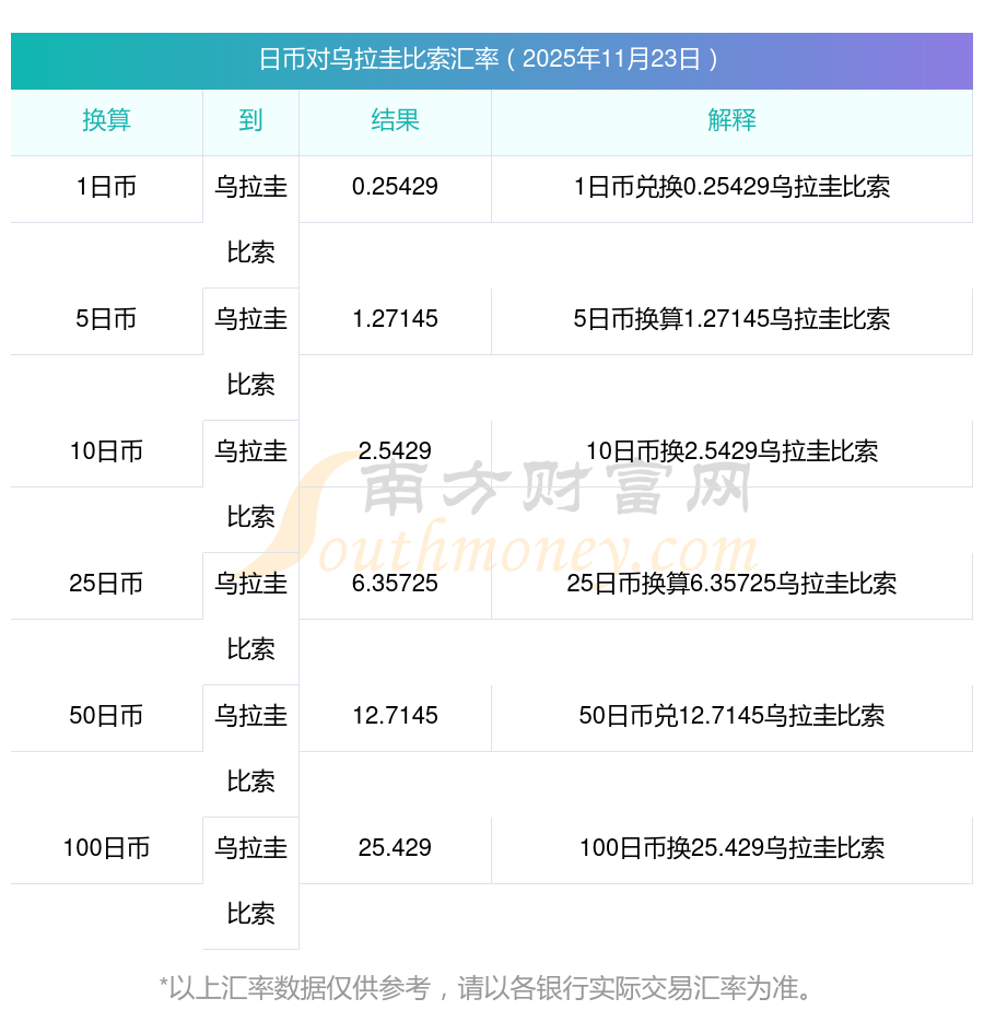 南方財富網(wǎng)為您提供日幣對烏拉圭比索匯率最新價格詳情。