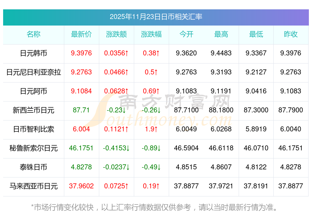2025年11月23日日幣相關(guān)匯率查詢