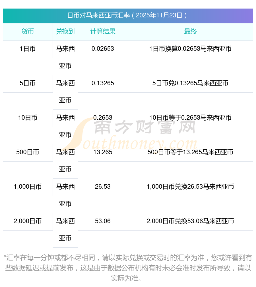 日幣16今天折算成馬來西亞幣匯率是多少 匯率查詢方法11月23日