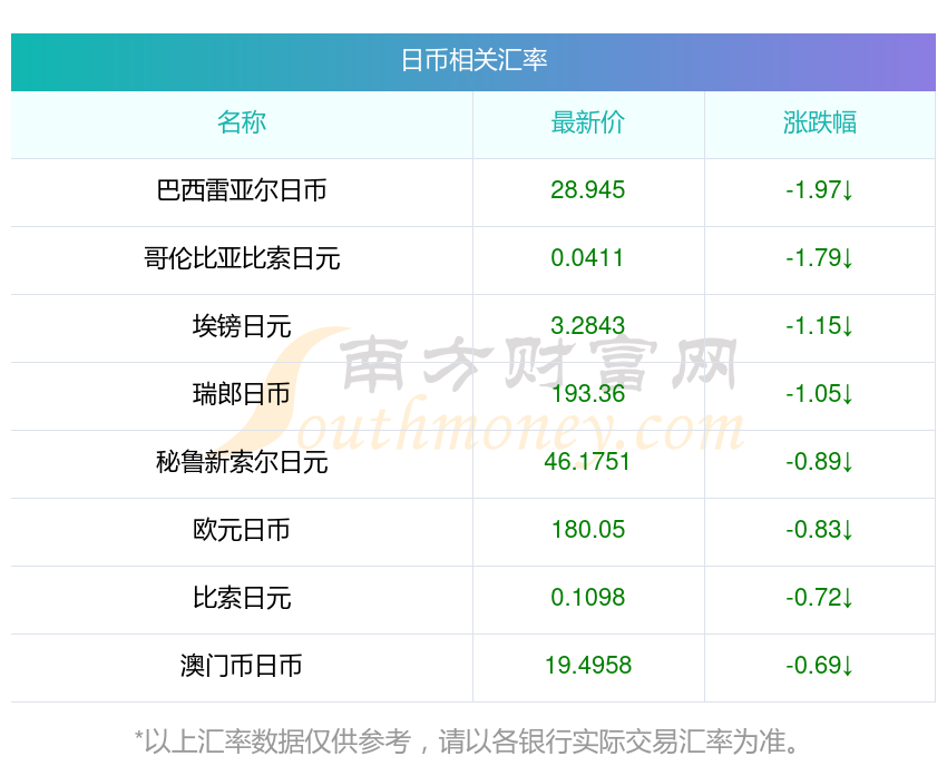 南方財富網(wǎng)為您提供日幣對馬來西亞幣匯率最新價格詳情。