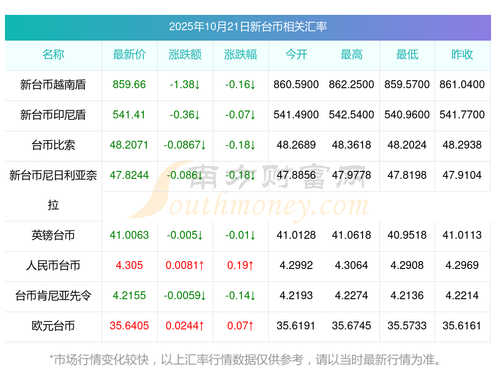 2025年10月21日新臺(tái)幣相關(guān)匯率查詢