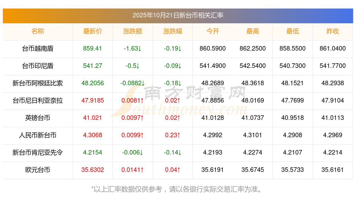 - 今天匯率更新!2025年10月15日11新臺(tái)幣兌換秘