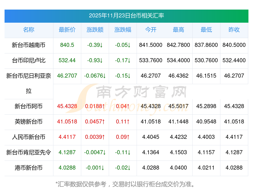 2025年11月23日臺(tái)幣相關(guān)匯率查詢