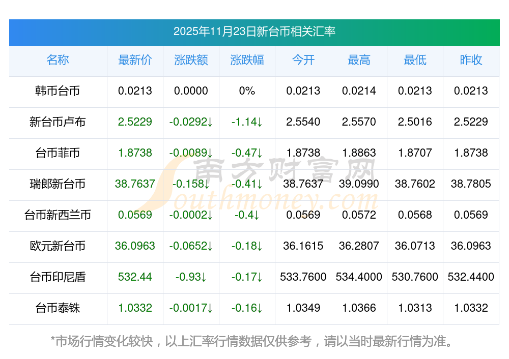 2025年11月23日新臺幣相關(guān)匯率查詢