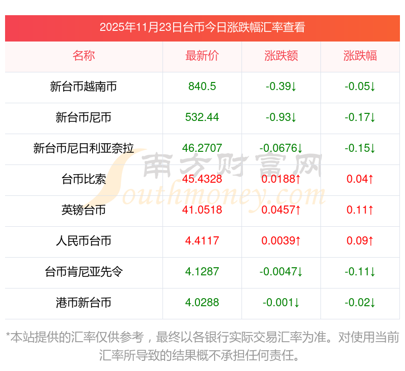 2025年11月23日臺(tái)幣相關(guān)匯率查詢
