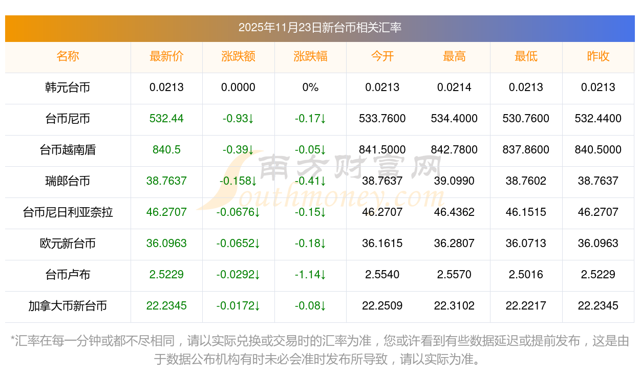 2025年11月23日新臺(tái)幣相關(guān)匯率查詢
