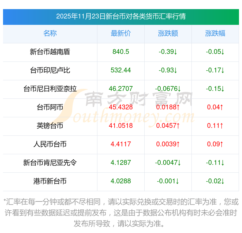 2025年11月23日新臺幣相關(guān)匯率查詢