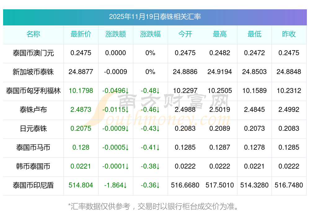 根據(jù)今天2025年11月19日匯率計(jì)算,THB兌換CZK匯率最新價(jià)0.643607,今開價(jià)0.6444,昨收價(jià)0.6445,最高價(jià)0.6453,最低價(jià)0.6423。