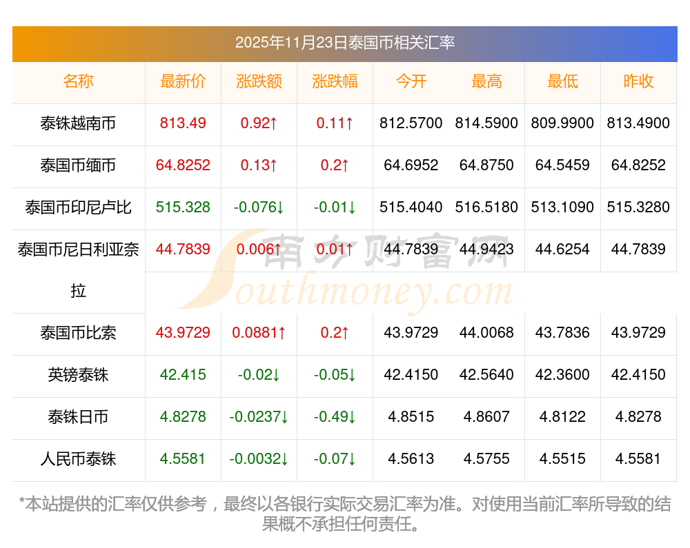 2025年11月23日泰國幣相關(guān)匯率查詢