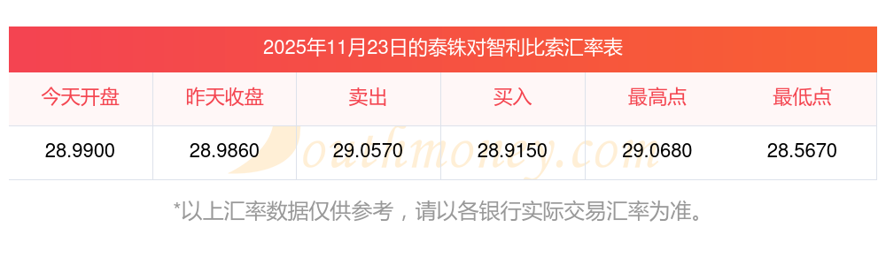 泰銖今日外匯_3泰銖兌換智利比索匯率是多少?(2025年11月23日)