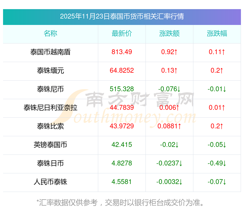 2025年11月23日泰國幣相關(guān)匯率查詢