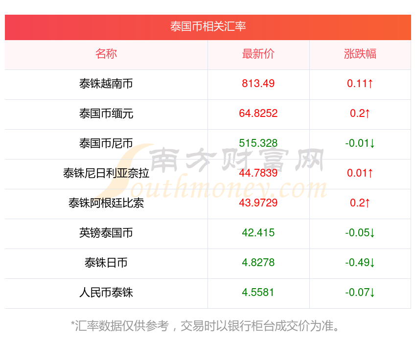 南方財富網為您提供泰國幣對典幣匯率最新價格詳情。