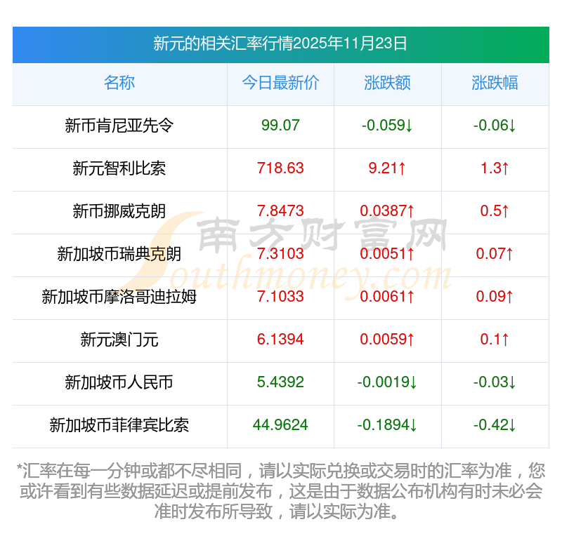 2025年11月23日新元相關匯率查詢